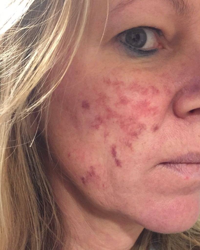 De eerste dagen reageert haar huid best heftig. Ze heeft een beetje zwelling en de huid is wat vurig en gevoelig. Maar ze houdt vol!